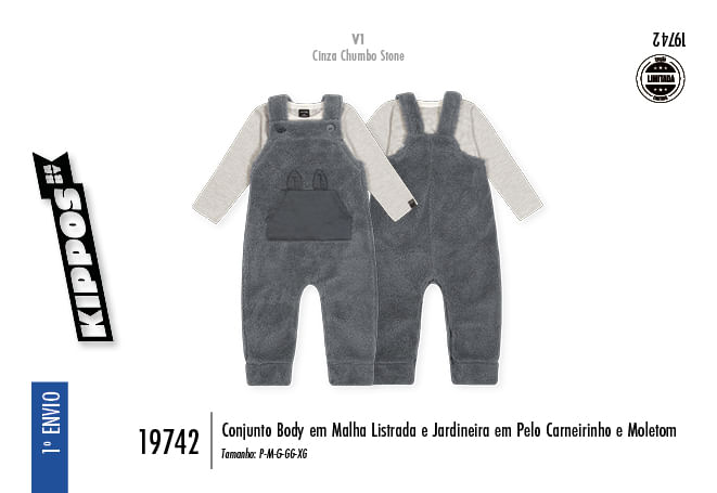 "O Conjunto Body e Jardineira da Kippos é a expressão máxima de fofura e conforto para a linha baby nesta temporada de inverno. Unindo estilo lúdico e materiais premium, o conjunto é composto por um body em malha listrada e uma jardineira que mescla o toque acolhedor do pelo carneirinho com a flexibilidade do moletom.
