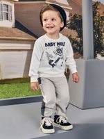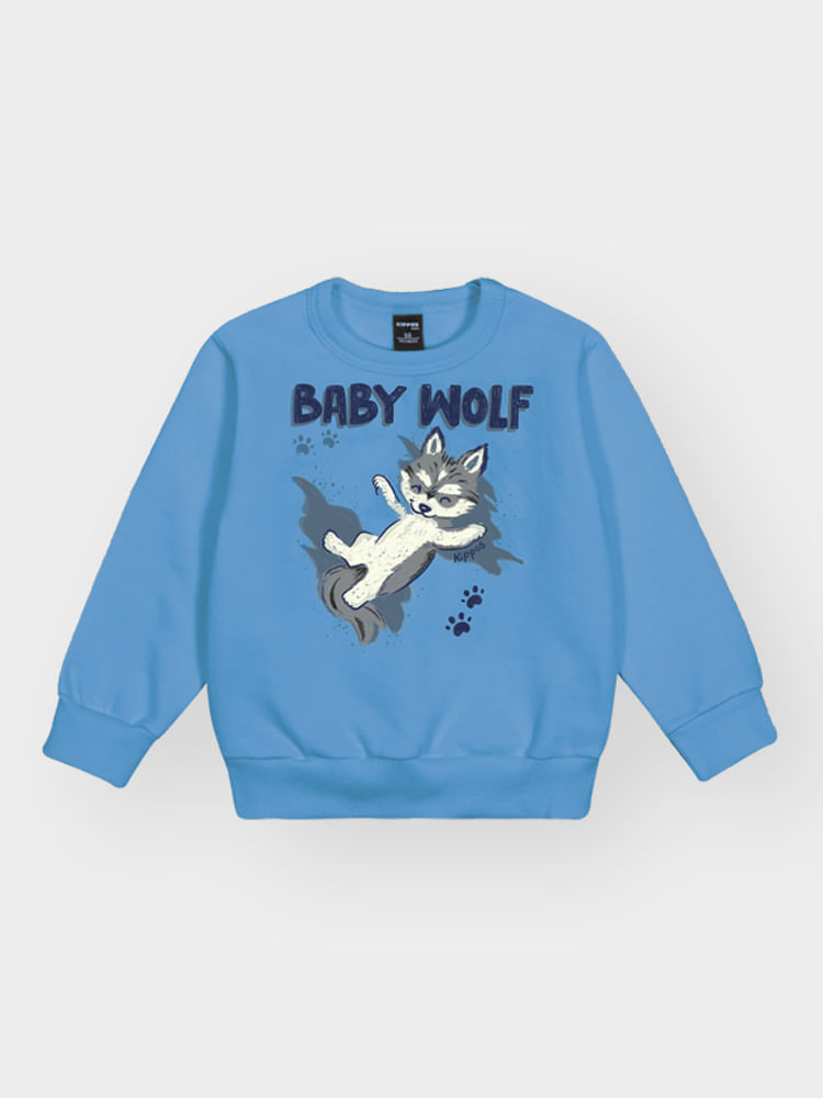 O design do blusão destaca-se por uma estampa frontal centralizada com a temática ""Baby Wolf"", que traz personalidade e charme à peça de forma moderna. Pensando na praticidade, conta com abertura no ombro por botões de pressão, facilitando a rotina de trocas, além de acabamentos premium em ribana nos punhos e na barra. A calça complementa o conjunto com um cós elástico rebatido para ajuste seguro e bolsos embutidos em recortes estratégicos, unindo funcionalidade e um corte contemporâneo.