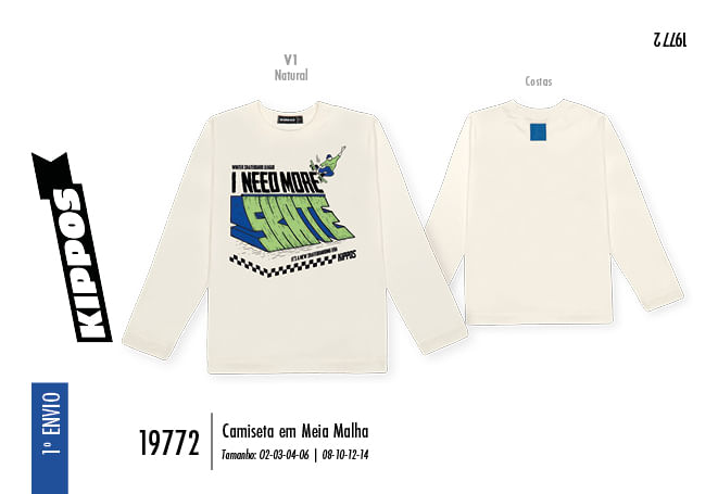 "Esta Camiseta Manga Longa em Meia Malha da marca Kippos é a escolha definitiva para compor o guarda-roupa de meninos que buscam um visual autêntico e cheio de energia. Desenvolvida com foco no conforto e na durabilidade, a peça apresenta um acabamento premium com friso no decote em ribana e bainha reforçada, garantindo resistência para acompanhar todas as aventuras do dia a dia. O grande destaque fica por conta da estampa vibrante inspirada no universo do skate, que utiliza elementos gráficos modernos e tipografia de impacto para criar um visual urbano e atual. Para completar o design exclusivo, a peça conta com uma etiqueta decorativa estrategicamente posicionada nas costas, reforçando a identidade fashion da marca.