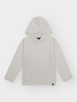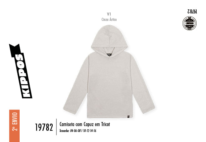 "Esta camiseta com capuz Kippos redefine o conceito de conforto com um toque de elegância para a moda infantil. Confeccionada em tricot, a peça oferece uma textura aconchegante e um caimento leve, ideal para quem busca um visual casual-chic sem abrir mão do bem-estar. O design moderno conta com um capuz funcional com transpasse no decote e acabamento em bainha, além de uma sofisticada etiqueta clip decorativa na barra, que reforça o DNA premium da marca.