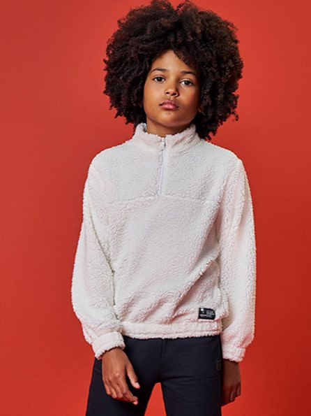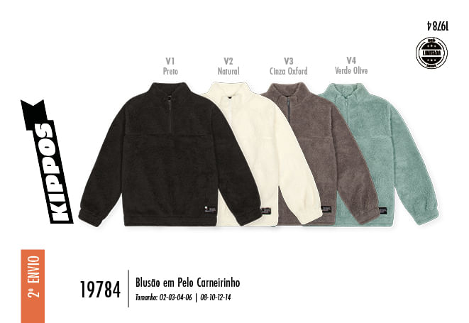 "Este blusão infantil Kippos é o ápice do conforto térmico aliado ao design contemporâneo. Confeccionado em Pelo Carneirinho, a peça oferece uma textura ultra macia e densa, garantindo que os pequenos fiquem protegidos com o máximo de aconchego nos dias mais frios do inverno. O modelo apresenta uma gola dupla estruturada com fechamento em zíper de nylon, permitindo versatilidade no ajuste, além de acabamentos premium com barra e punhos em elástico rebatido, que asseguram um caimento impecável e bloqueiam a entrada de vento.