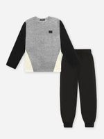 "Este conjunto infantil Kippos é a escolha ideal para quem busca praticidade e um visual clean na coleção Inverno 2026. A combinação inteligente de materiais traz uma camiseta de manga longa em Meia Malha, garantindo um toque suave e respirável para a pele, com uma calça em Moletom de alta qualidade, que oferece o aquecimento e a resistência necessários para a estação. O design foca no conforto funcional, apresentando decote em friso de ribana, punhos ajustados e um cós rebatido com elástico interno, complementado por um cadarço roliço travetado com acabamento em nó para um ajuste personalizado.