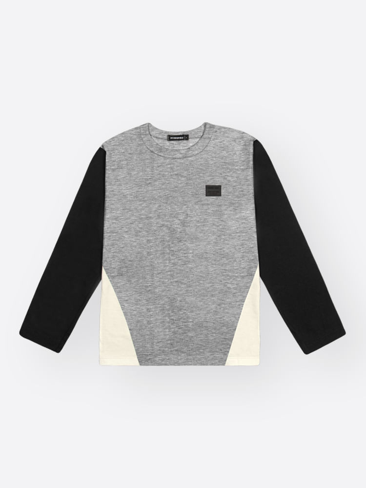 A sofisticação da peça é definida pelo seu recorte frontal estratégico, que cria um bloco de cores moderno e dinâmico, dispensando estampas gráficas em favor de um design geométrico e minimalista. Uma etiqueta decorativa aplicada com precisão reforça a identidade premium da marca, tornando este conjunto uma peça versátil que transita facilmente entre o estilo básico e o fashionista.