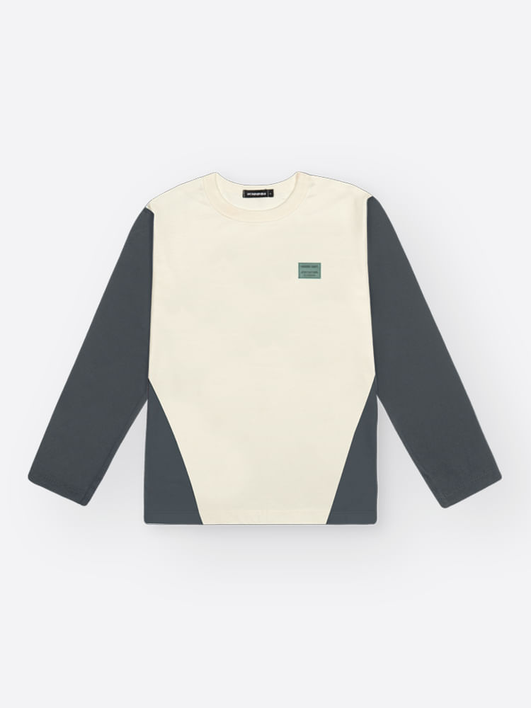 A sofisticação da peça é definida pelo seu recorte frontal estratégico, que cria um bloco de cores moderno e dinâmico, dispensando estampas gráficas em favor de um design geométrico e minimalista. Uma etiqueta decorativa aplicada com precisão reforça a identidade premium da marca, tornando este conjunto uma peça versátil que transita facilmente entre o estilo básico e o fashionista.