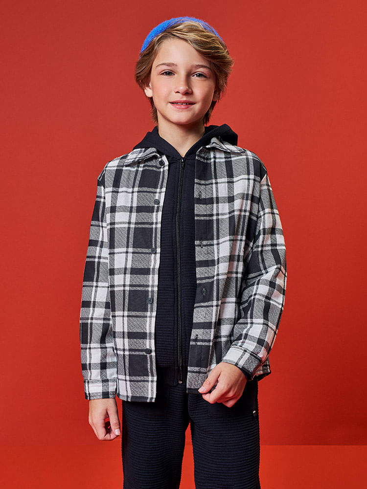 "A Camisa em Flanela Xadrez da Kippos é o ícone de estilo para o guarda-roupa dos meninos que não abrem mão de uma pegada urbana e sofisticada. Confeccionada em flanela de toque macio e aconchegante, esta peça eleva o conceito de moda casual com detalhes de alfaiataria impecáveis, como a gola talhada dupla e a abertura frontal com botões rajados especiais. O grande diferencial técnico e estético fica por conta do perfeito encontro de xadrez na frente, garantindo uma simetria visual que reflete o cuidado da marca com o acabamento premium. Sua modelagem possui barra levemente arredondada e punhos com carcela, proporcionando um caimento impecável e confortável.