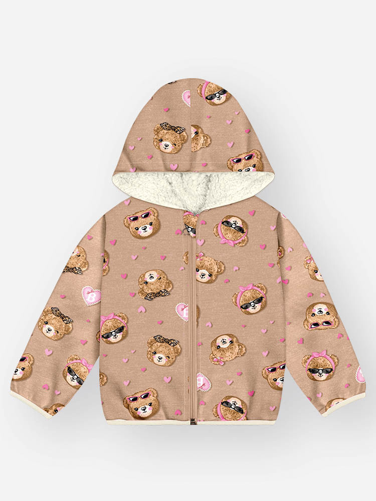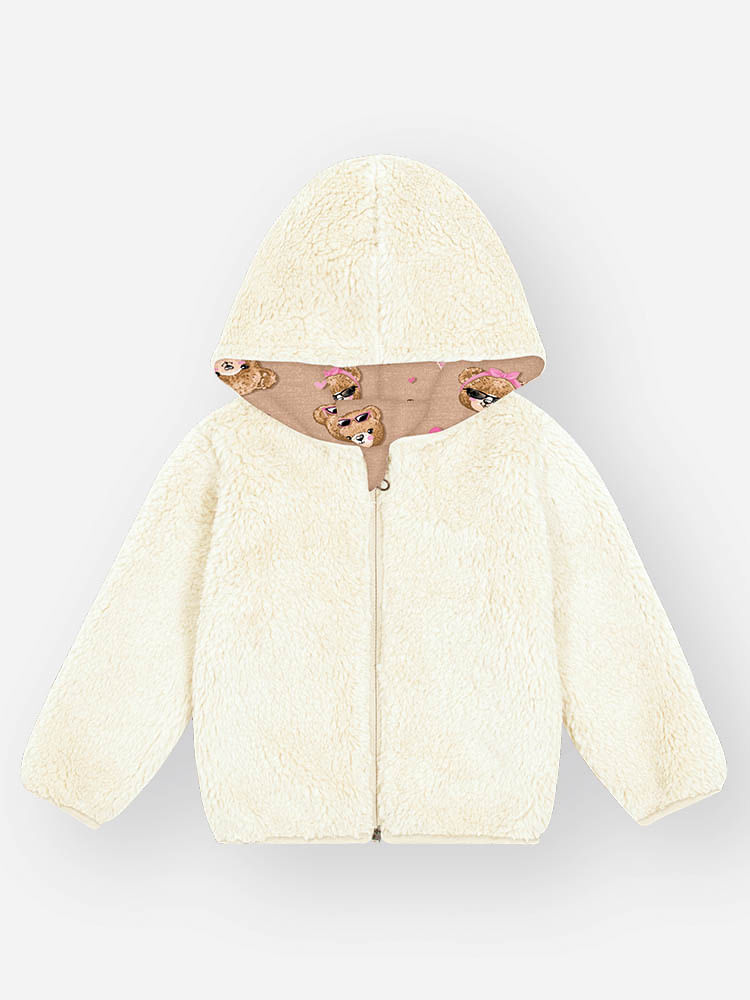 O design funcional é rico em detalhes de alta qualidade, apresentando um capuz generoso com forro em pelo e fechamento frontal com zíper reversível, que conta com protetor de segurança para não irritar a pele sensível da criança. O ajuste é impecável graças ao elástico embutido nos punhos e na barra, que bloqueia a entrada de ar frio e mantém a jaqueta no lugar durante as brincadeiras. As estampas exclusivas trazem o charme das temáticas lúdicas, apresentando padrões delicados de dálmatas, ursinhos e elementos fofos com laços, que conferem um ar lúdico e fashionista à peça.