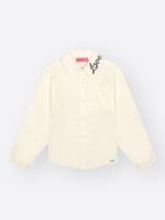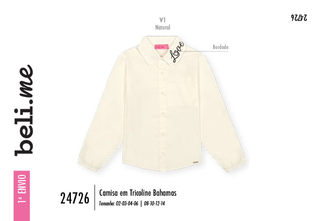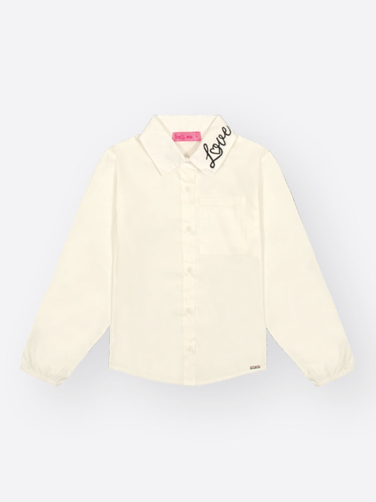 O design é marcado pela delicadeza, apresentando uma gola estruturada com um charmoso bordado lateral que traz um ar artesanal e exclusivo à peça. Com uma modelagem atemporal, a camisa possui botões rajados frontais, um bolso funcional e mangas longas finalizadas com elástico rebatido, garantindo um ajuste confortável nos punhos. A barra arredondada e a plaquinha de metal personalizada da marca completam o visual com um acabamento de alta costura.