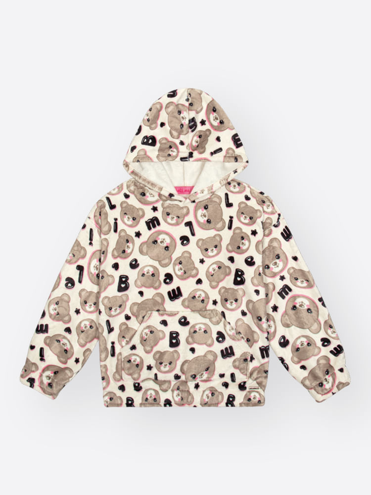 "Este blusão da Beli.me é a união perfeita entre o estilo streetwear e o aconchego máximo para as pequenas fashionistas. Confeccionado em pelo fleece, ele oferece uma textura ultra macia e um isolamento térmico ideal para os dias mais frios. O design conta com modelagem moderna de cava deslocada, capuz funcional com recorte e um prático bolso canguru frontal, garantindo um visual despojado e contemporâneo.
