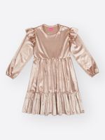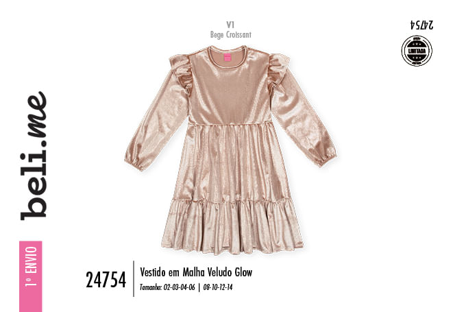 "O Vestido Beli.me em Malha Veludo Glow é a tradução do luxo e do conforto para a moda infantil, ideal para quem busca uma peça que combine brilho e suavidade. Com um caimento fluido e sofisticado, o modelo apresenta mangas longas com acabamento em elástico rebatido nos punhos e charmosos babados franzidos nas cavas, que elevam o design a um nível fashionista e delicado.