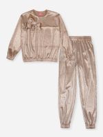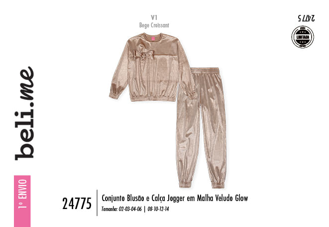 "Este conjunto infantil de inverno da Beli.me redefine o conceito de loungewear de luxo para meninas, unindo uma estética glamourosa ao toque ultra macio. Confeccionado inteiramente em malha veludo glow, o conjunto proporciona um brilho sofisticado e uma textura aveludada que é tendência absoluta na moda kids. O design conta com um blusão de cava levemente deslocada e uma calça jogger com cós e punhos elásticos rebatidos, garantindo um ajuste perfeito e moderno ao corpo.