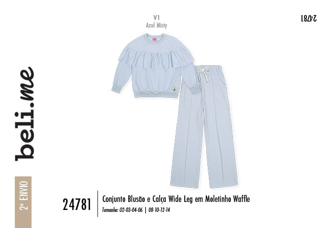 "O conjunto infantil feminino da Beli.me é a tradução da sofisticação prática para o guarda-roupa das meninas que acompanham as tendências. Confeccionado em moletinho waffle, o tecido traz uma textura tridimensional em relevo que é o ponto alto da temporada, oferecendo um toque macio e um visual contemporâneo. O blusão possui detalhes delicados, como o leve franzido na cabeça da manga e recortes que valorizam o caimento, enquanto a calça wide leg entrega a silhueta ampla e fluida que domina a moda streetwear.