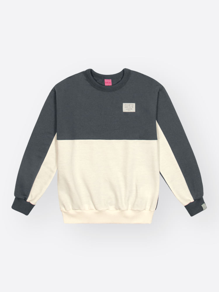 O design aposta em um visual moderno de blocos de cores (color block), apresentando recortes geométricos estratégicos no blusão que conferem uma estética urbana e despojada. O conjunto prioriza o conforto com sua modelagem de cava levemente deslocada e acabamentos em punhos e barras talhados, garantindo um caimento impecável sem restringir os movimentos. Uma etiqueta decorativa exclusiva finaliza a peça com o selo de autenticidade da marca.