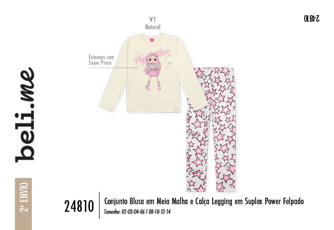 "Este conjunto da Beli.me é a tradução perfeita de estilo e conforto para as pequenas que amam um visual moderno e cheio de personalidade. O look é composto por uma blusa em meia malha, que proporciona um toque suave e respirável à pele, e uma calça legging em suplex power felpado, que garante máxima cobertura, elasticidade e o aconchego necessário para os dias mais frescos.