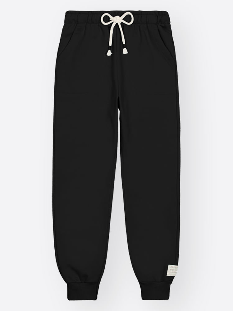 O design foca na funcionalidade e no visual moderno, apresentando bolsos chapados práticos e um cós com elástico rebatido que garante o ajuste perfeito sem apertar. O diferencial estético fica por conta do cadarço com linha de entremeio e do punho em ribana, que conferem o autêntico caimento jogger, além de uma delicada etiqueta decorativa lateral que reforça a identidade premium da peça. Com um acabamento liso e minimalista, a calça abdica de estampas complexas para focar na versatilidade das texturas e no design limpo.