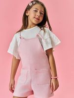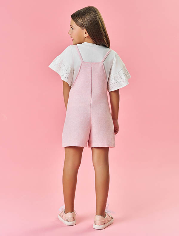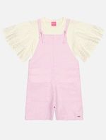 Conjunto Infantil Menina Blusa E Jardineira Sarja Rosa Mundo Cinti