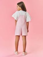 MeninasMacaquinhosConjunto Infantil Menina Blusa E Jardineira Sarja Rosa Mundo Cinti