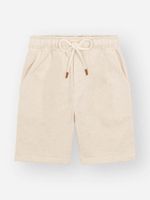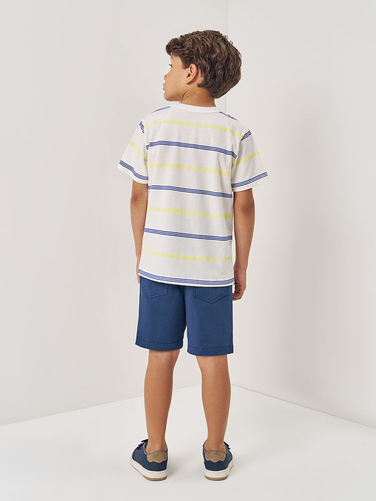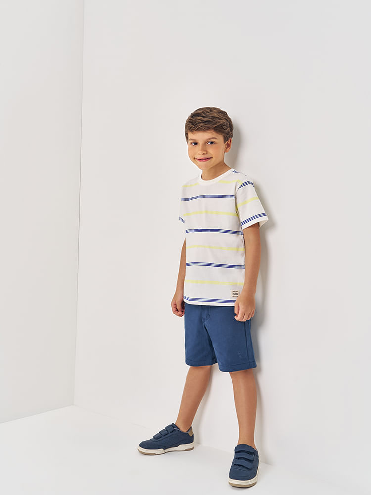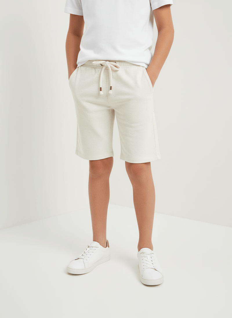 Uma opção moderna e atemporal de bermuda infantil confortável e estilosa, ideal para quem busca praticidade sem abrir mão do visual arrumado.