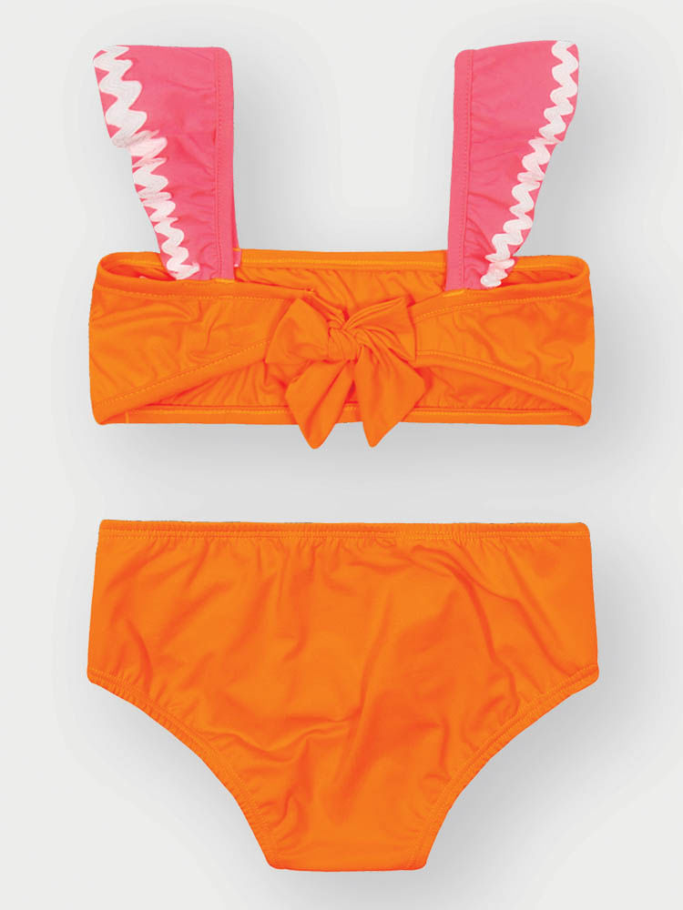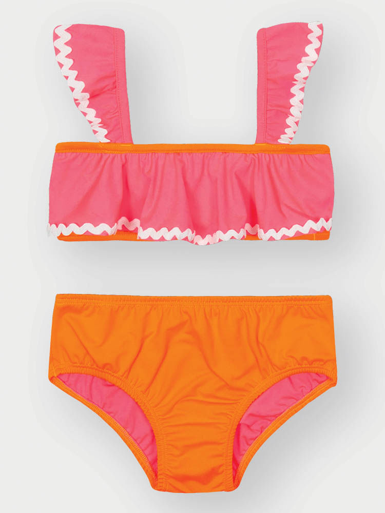 Com visual vibrante e cheio de charme, esse biquíni infantil é feito em Malha UV, oferecendo toque macio, fresco e superconfortável, ideal para os dias quentes de verão. A composição do tecido garante proteção contra os raios solares UVA e UVB, perfeita para brincar na praia ou na piscina com mais segurança.