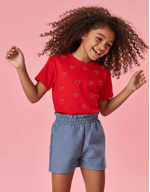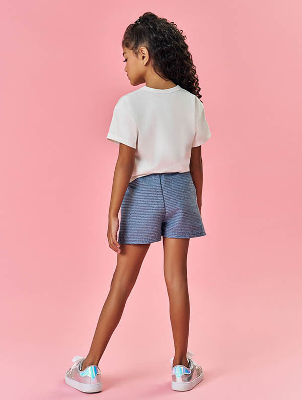 calças, shorts ou saias, tornando-a perfeita para diferentes ocasiões e garantindo que sua pequena esteja sempre na moda com conforto e elegância. Alto Verão 2024/2025. A modelo veste tamanho 6 e possui 1,20cm de altura.