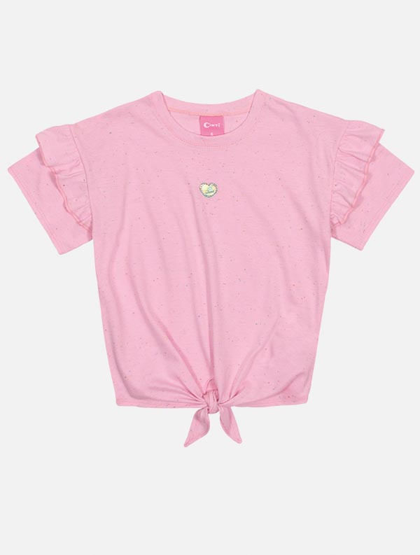 Blusa boxy em meia malha é perfeita para um visual despojado e cheio de charme. Confeccionada com uma modelagem ampla e confortável, ela se destaca pelos detalhes de babado e frufru nas mangas, que adicionam um toque de feminilidade e graça. A etiqueta decorativa no peito confere um detalhe sofisticado, enquanto o detalhe de nós na barra dá um acabamento moderno e descolado. Combine esta blusa com