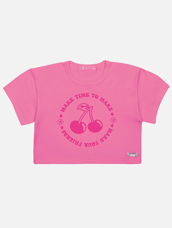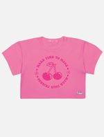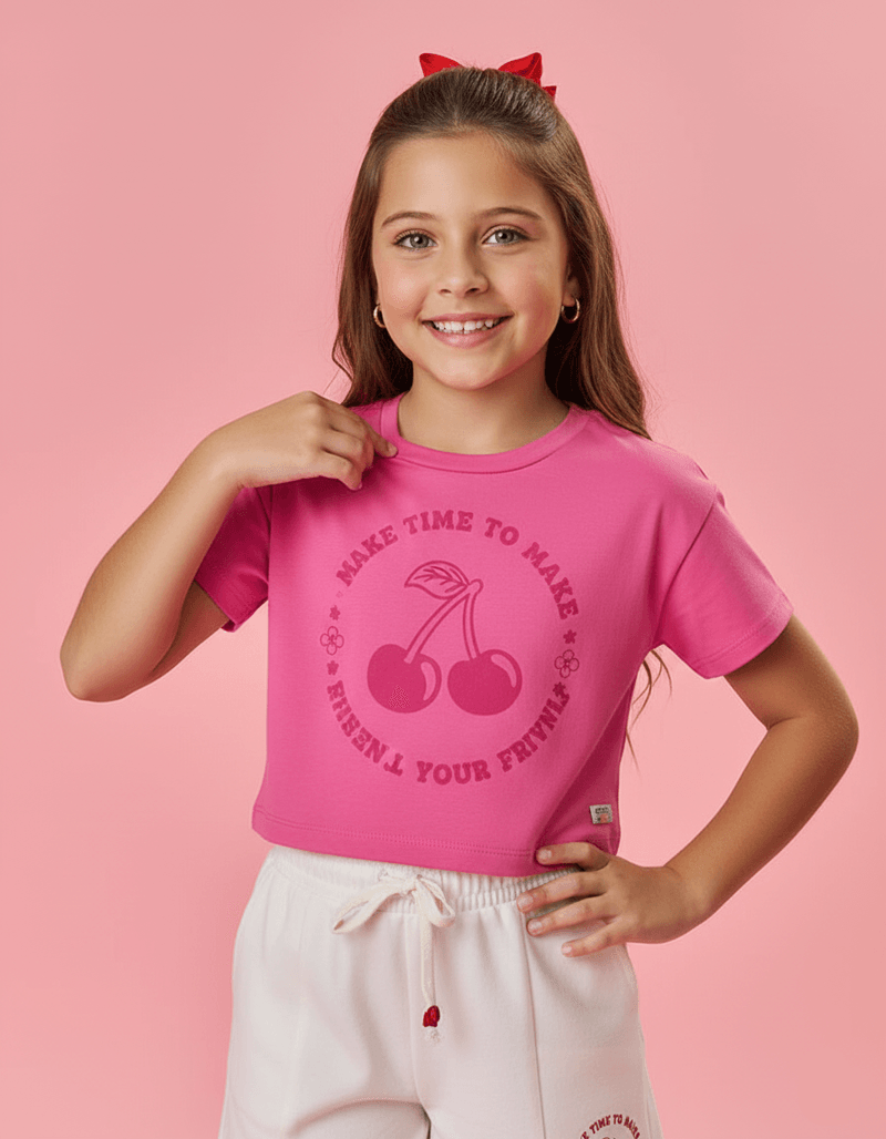 Blusa cropped em meia malha é a escolha perfeita para as pequenas que adoram um toque divertido! Com uma estampa puff frontal que exala um irresistível cheirinho de tutti-frutti, ela traz um charme especial ao look. A etiqueta decorativa próxima à bainha adiciona um detalhe extra de estilo. Combine esta blusa com