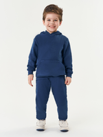 Blusão básico em moletom felpado com bolso canguru. Inverno 2024. Modelo veste tamanho 4 e possui 1 06 cm de altura.