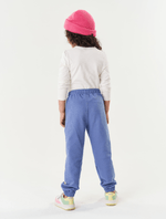 Calça feminina em molecotton jeans com elástico no cós bolsos frontais braguilha falsa punho com elástico e etiqueta decorativa na lateral. Inverno 2024. Modelo veste tamanho 4 e possui 1 14 de altura.