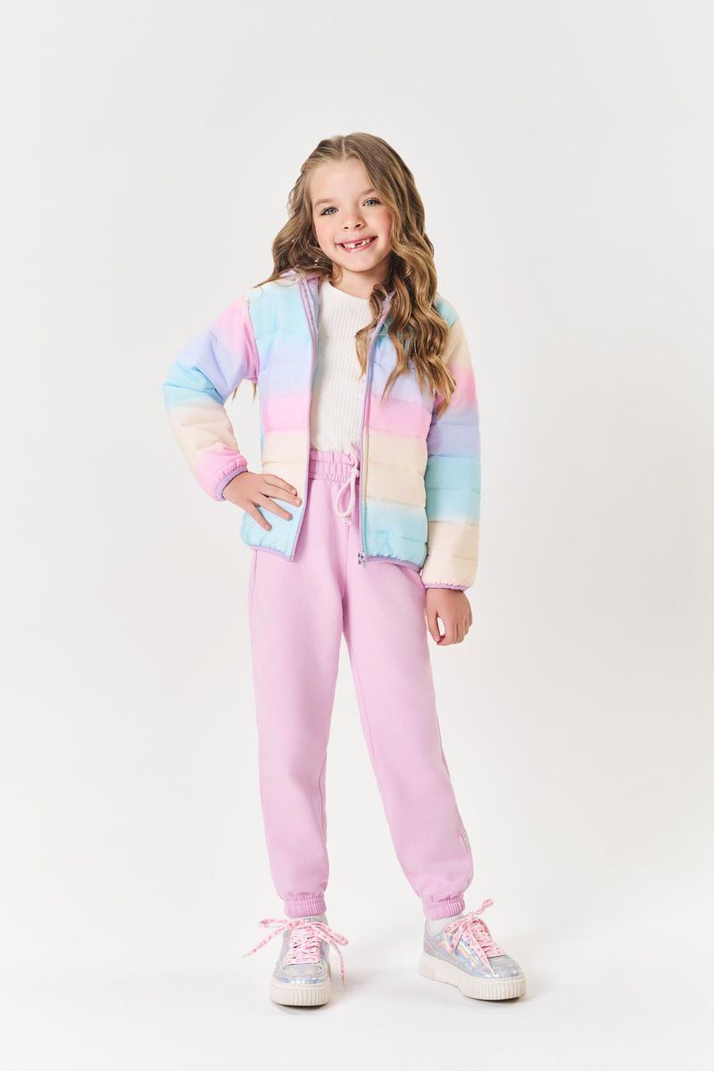 casacos ou jaquetas, a calça jogger oferece conforto e personalidade para o dia a dia. Coleção Inverno 2025. A modelo veste tamanho 06 e possui 1,22cm de altura.