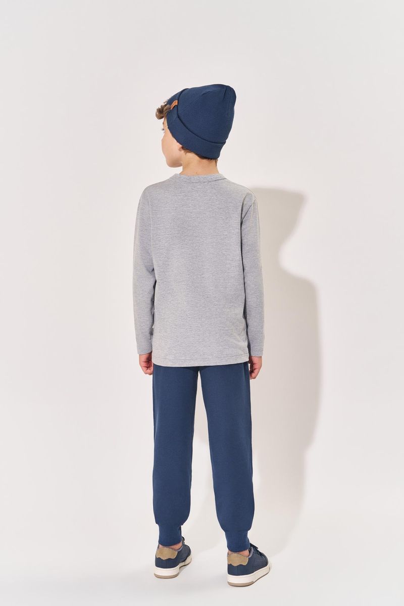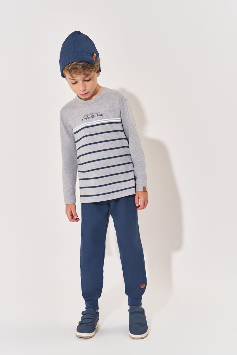 Conforto e estilo para todas as aventuras! A calça em moletom é ideal para os meninos que precisam de liberdade nos movimentos sem abrir mão do visual moderno. Com cintura de elástico para ajuste perfeito, cadarço no cós com nó nas pontas e costas deslocadas, essa peça traz um caimento impecável. O bolso traseiro funcional e a etiqueta decorativa próximo à barra garantem um toque diferenciado. Finalizada com punhos em ribana para um ajuste confortável. Combine com blusões e jaquetas para um look estiloso e cheio de atitude!