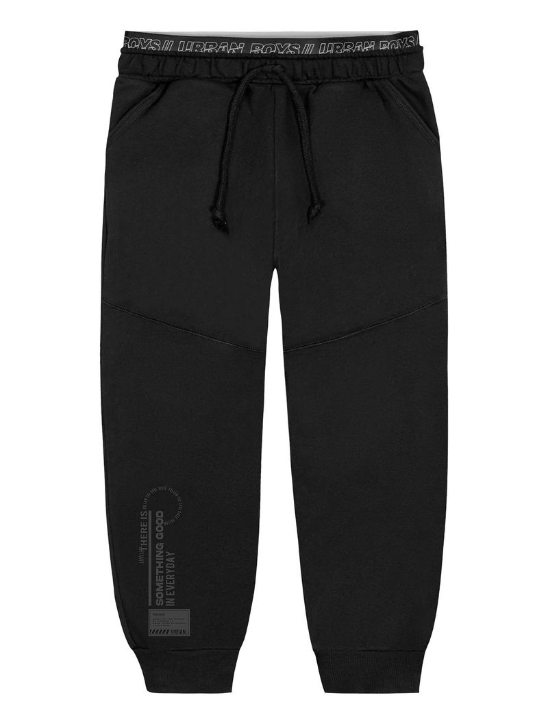 Calça masculina em moletom felpado com elástico decorativo e cadarço decorativo no cós bolsos frontais detalhe de costura na perna e estampa na lateral. Inverno 2024. Modelo veste tamanho 8 e possui 1 34 cm de altura.