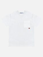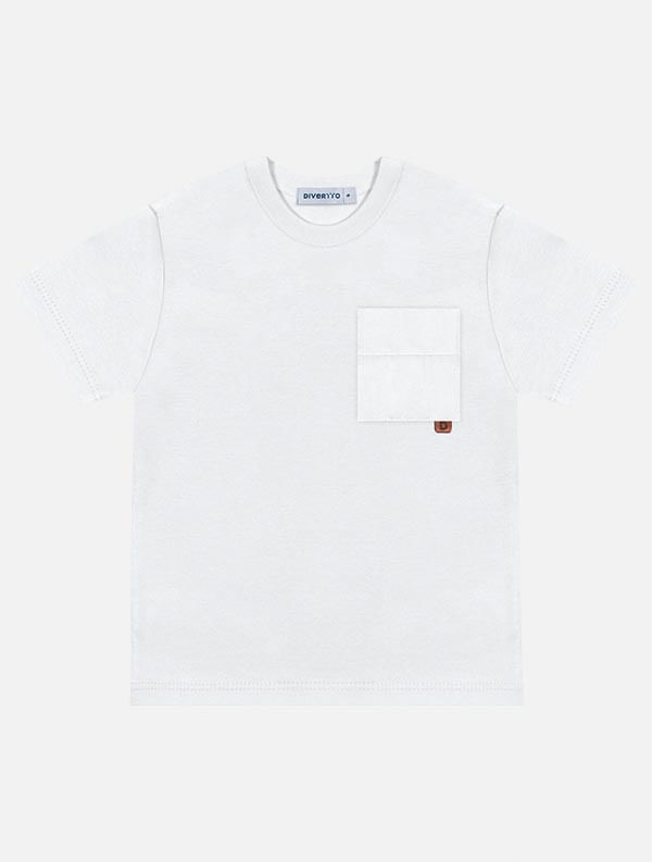 A camiseta em meia malha ganha um toque especial com o bolso em tricoline no peito, que traz um contraste moderno e estiloso. A etiqueta decorativa abaixo do bolso complementa o visual, dando um detalhe único à peça. Perfeita para compor looks despojados, pode ser combinada com