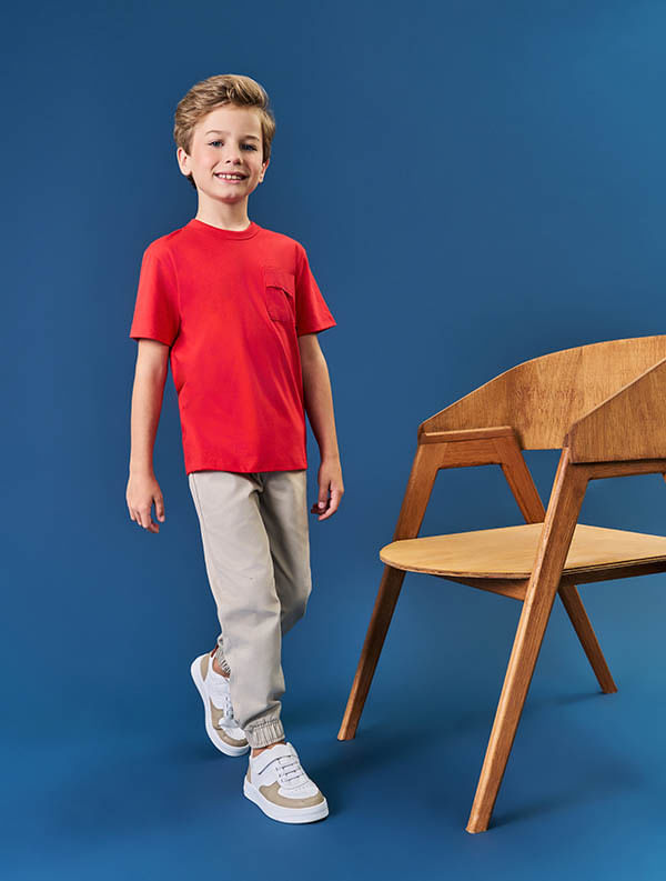 bermuda ou calças para um visual urbano e confortável. Ideal para os meninos que gostam de praticidade sem perder o estilo! Alto Verão 2024/2025. O modelo veste tamanho 06 e possui 1,24cm de altura.