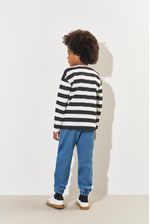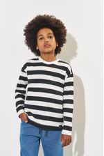Camiseta de manga longa em meia malha, perfeita para o dia a dia! Com cava deslocada, essa peça garante um ajuste confortável e moderno. A estampa total de listras traz um visual divertido e cheio de estilo, enquanto a etiqueta decorativa na bainha adiciona um toque especial. Ideal para combinar com calças, essa camiseta é uma escolha versátil que vai deixar os looks das crianças ainda mais estilosa! Inverno 2025. Modelo veste tamanho 8 e possui 1,33cm de altura.