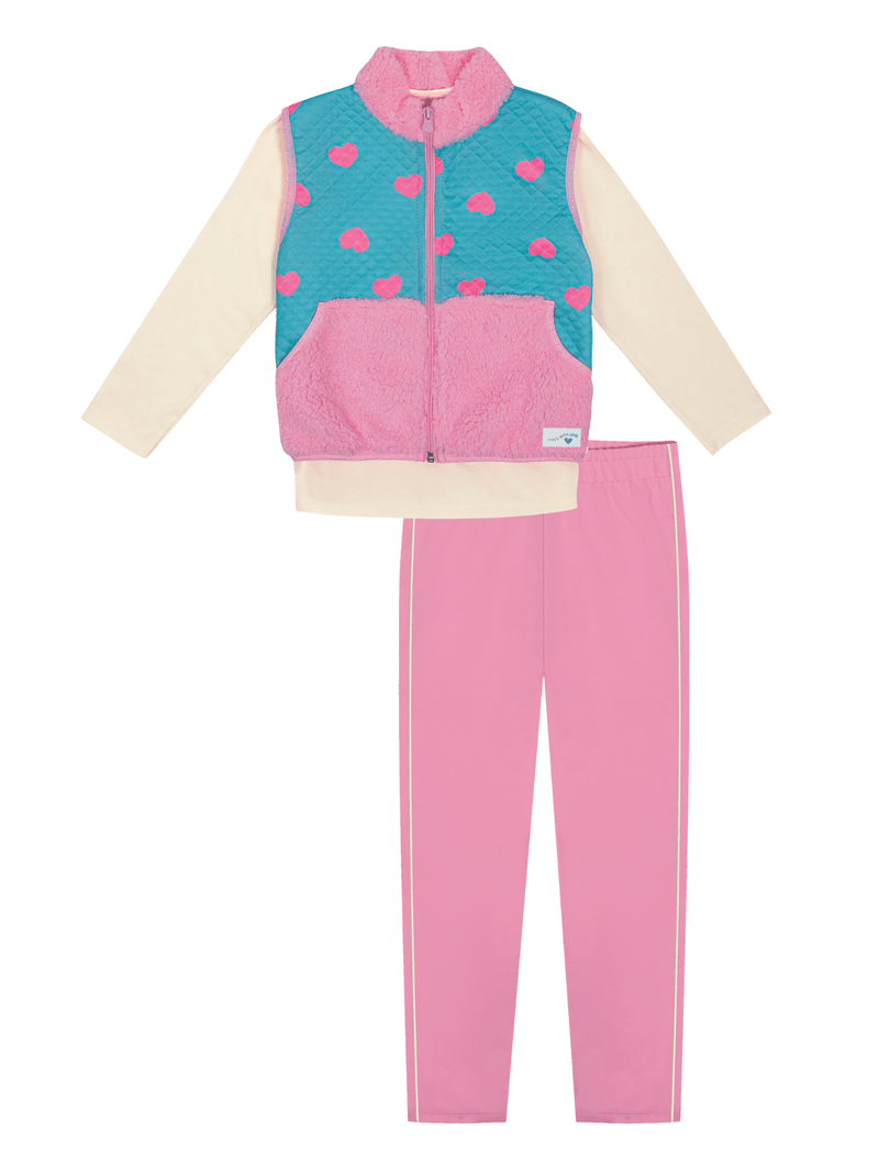 Conjunto Blusa Legging E Colete Com Pelo Natural E Rosa Abrange