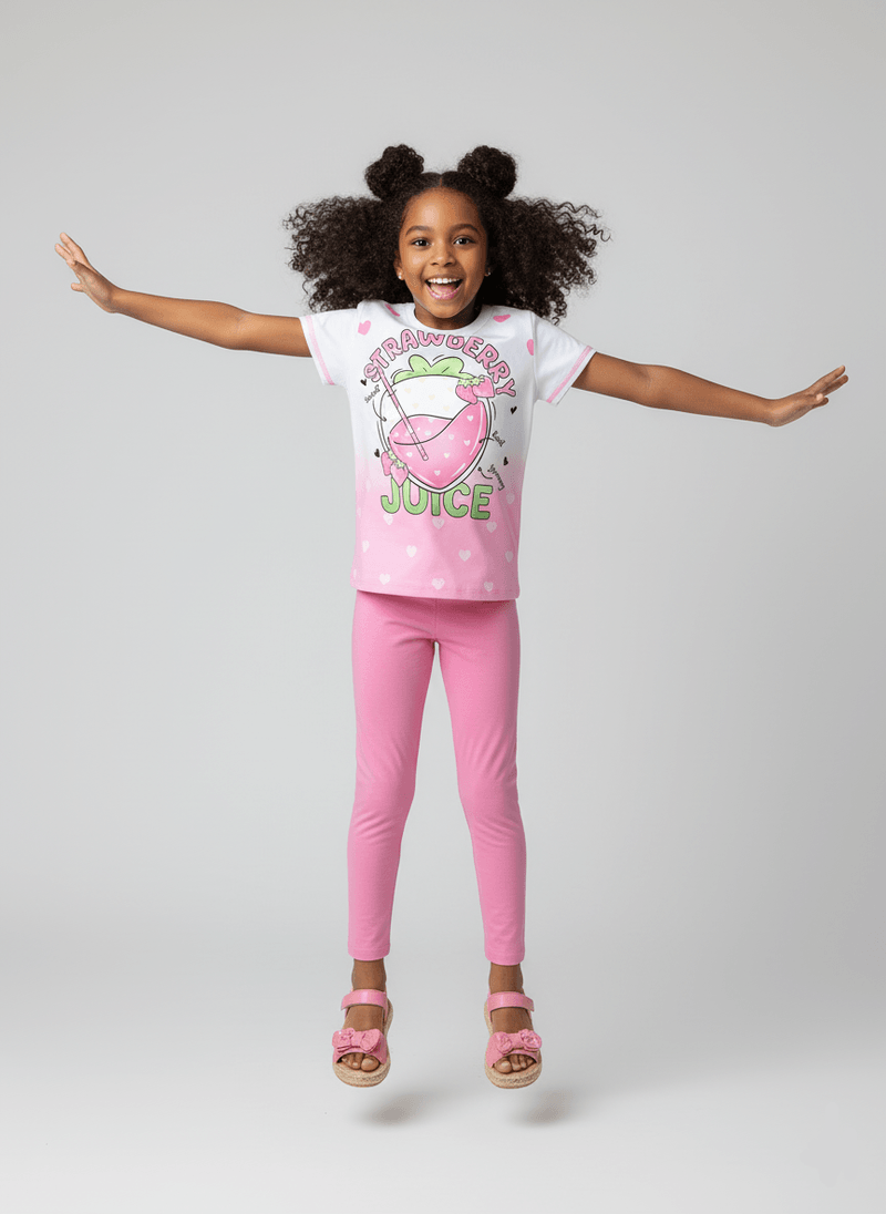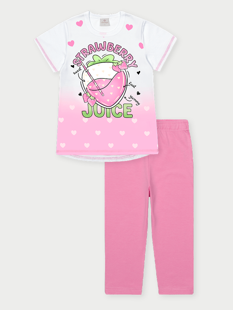 O conjunto infantil feminino blusa em meia malha e calça capri em cotton é a escolha ideal para unir conforto, estilo e praticidade no dia a dia das meninas. A blusa conta com frente sublimada em estampa divertida de Strawberry Juice, com cores vibrantes e detalhes delicados em corações que deixam o look ainda mais encantador. Sua modelagem moderna com comprimento mullet nas costas garante liberdade de movimentos e um caimento confortável. A calça capri é confeccionada em cotton com elasticidade e toque macio, perfeita para acompanhar o ritmo ativo das crianças com ajuste prático no cós em elástico rebatido. O tecido da blusa é composto por corpo em 100% algodão, que proporciona leveza, respirabilidade e suavidade na pele, e frente em 96% poliéster com 4% elastano, garantindo maleabilidade e elasticidade. Já a calça capri é feita em 96% algodão e 4% elastano, oferecendo maciez e flexibilidade para todos os momentos. Esse conjunto é ideal para passeios em família, idas à escola e momentos de lazer, trazendo uma proposta moderna, divertida e confortável para o guarda-roupa infantil feminino.