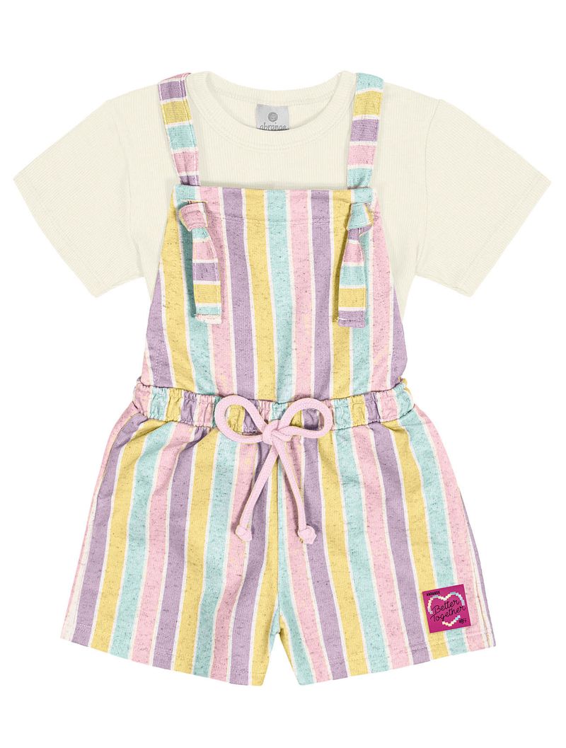 MeninasMacaquinhosConjunto Blusa E Jardineira Listrada Natural E Amarelo Abrange