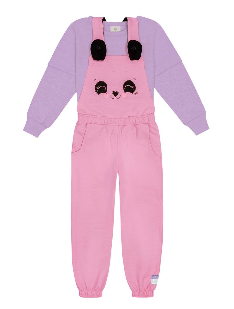 Conjunto Blusa E Jardineira Panda Lilás E Rosa Abrange