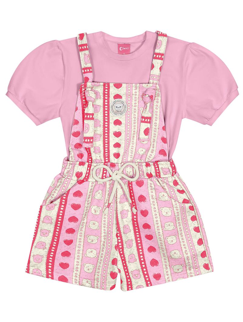 Conjunto Infantil Menina Blusa E Jardineira Ursinho Rosa Cinti