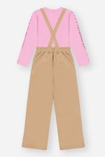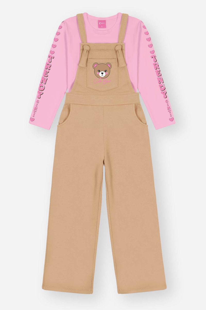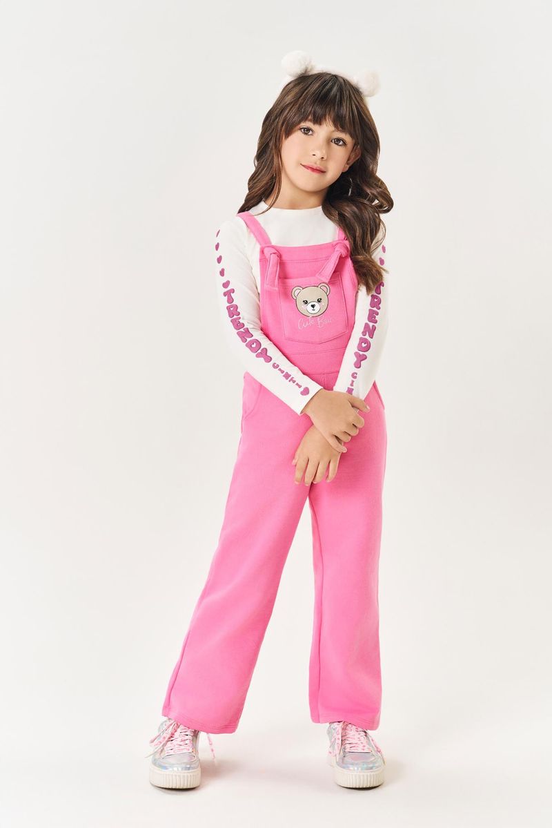 Conjunto moderno e confortável, composto por uma blusa em cotton com estampa divertida nas mangas, trazendo um toque de personalidade ao visual. A jardineira, feita em moletom felpado, oferece aconchego e estilo, com alças reguláveis em nós para um ajuste perfeito. O bolso frontal apresenta uma estampa fofa de ursinho, adicionando charme à peça. O cós com elástico nas costas garante um caimento confortável, enquanto os bolsos frontais trazem praticidade e um toque extra de estilo. Ideal para o dia a dia, esse conjunto une conforto e tendência de forma descomplicada. Coleção Inverno 2025. A modelo veste tamanho 06 e possui 1,22cm de altura.