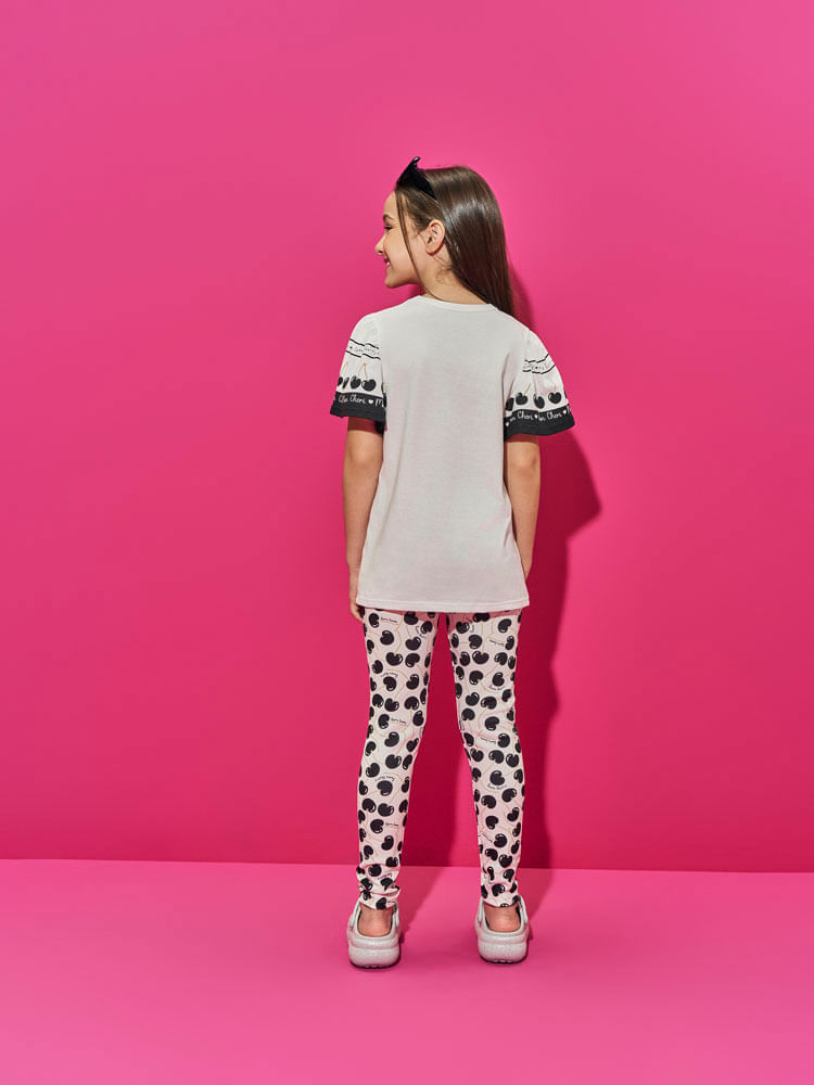 Acompanha calça legging em neoprene leve e flexível, que proporciona um ajuste confortável ao corpo sem apertar. A estampa digital com cerejas dá um charme especial ao look.