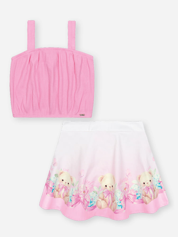 Esse conjunto é a escolha perfeita para unir estilo, conforto e delicadeza nas produções das meninas. A blusa cropped é confeccionada em canelado glow (92% algodão e 8% elastano), tecido que proporciona toque macio, excelente elasticidade e maleabilidade, garantindo liberdade de movimentos e caimento impecável no corpo.
