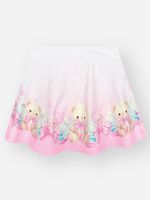 O destaque fica por conta da estampa delicada de ursinhos com laços e flores em tons suaves de rosa e azul, que adiciona um charme lúdico e encantador ao look.