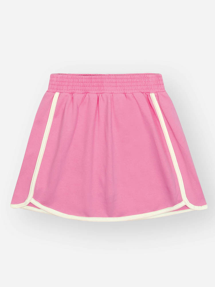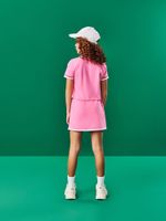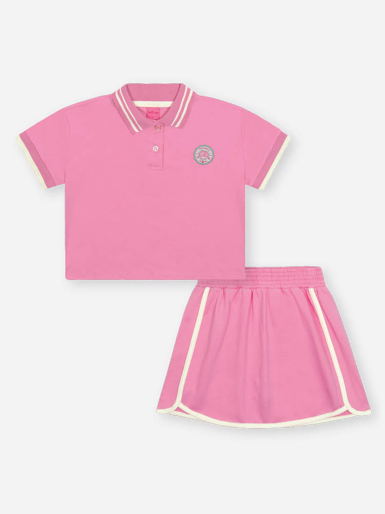 O bottom é a prática Saia-Shorts em Moletinho, que oferece o melhor dos dois mundos: a feminilidade da saia e a segurança do short. Confeccionada em moletinho macio, a cintura possui elástico para ajuste e um friso contrastante na barra que coordena perfeitamente com a polo.