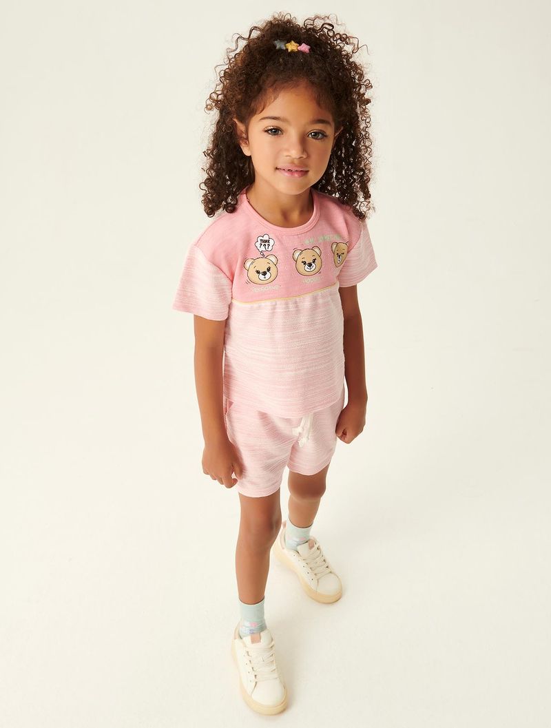 MeninasConjuntos CurtosConjunto Blusa E Short Ursinho Rosa Abrange