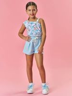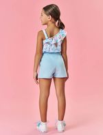 Conjunto com uma junção perfeita de estilo e conforto, ideal para pequenas fashionistas. A blusa cropped em malha new stretch é sofisticada com seu babado na frente e nas costas, criando um efeito delicado e feminino. O elástico no decote e na barra proporciona um ajuste perfeito, enquanto a estampa total de fundo do mar com sereias adiciona um toque mágico e divertido. O short, confeccionado em moletinho, é prático e confortável, com cós estilo clochard com elástico e cadarço decorativo para um ajuste ajustável e moderno. Uma etiqueta decorativa próxima da bainha completa o visual com um detalhe encantador. Perfeito para brincar e explorar, este conjunto traz um charme especial para qualquer ocasião. Alto Verão 2024/2025. A modelo veste tamanho 6 e possui 1,22cm de altura.