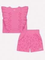 Conjunto perfeito para as pequenas que adoram conforto e estilo! A blusa cropped em meia malha apresenta mangas em babados e um frufru tanto na frente quanto nas costas, garantindo um visual encantador. Com estampa frontal divertida e um cheirinho de tutti-frutti, ela é cheia de personalidade. O short em moletinho oferece conforto, com cós elástico e bolsos frontais práticos. A estampa total completa o look com charme. A etiqueta decorativa próxima à bainha adiciona um toque especial. Ideal para brincadeiras e passeios, este conjunto é uma escolha irresistível para compor looks cheios de diversão! Alto Verão 2024/2025. A modelo veste tamanho 6 e possui 1,20cm de altura.