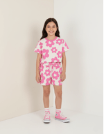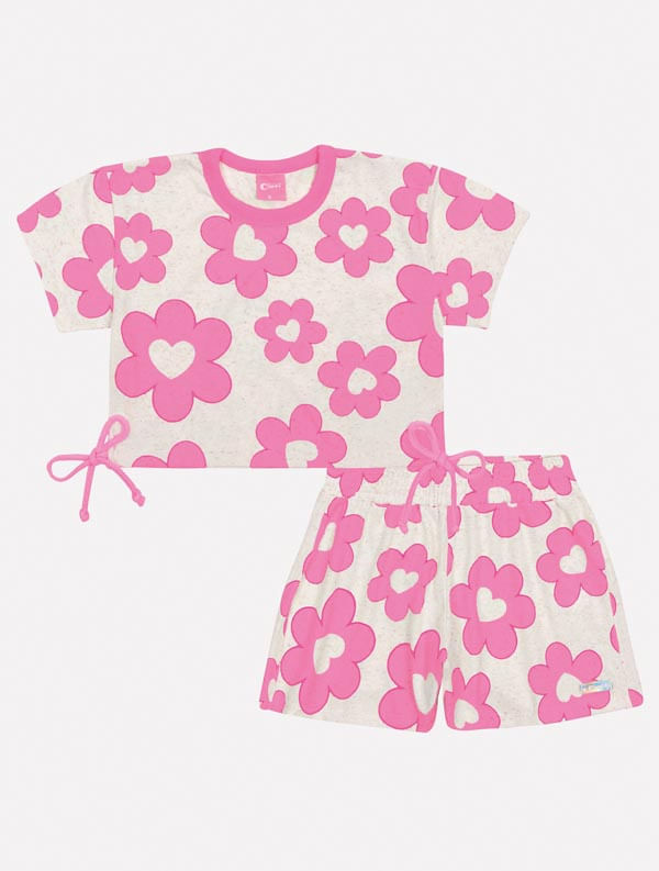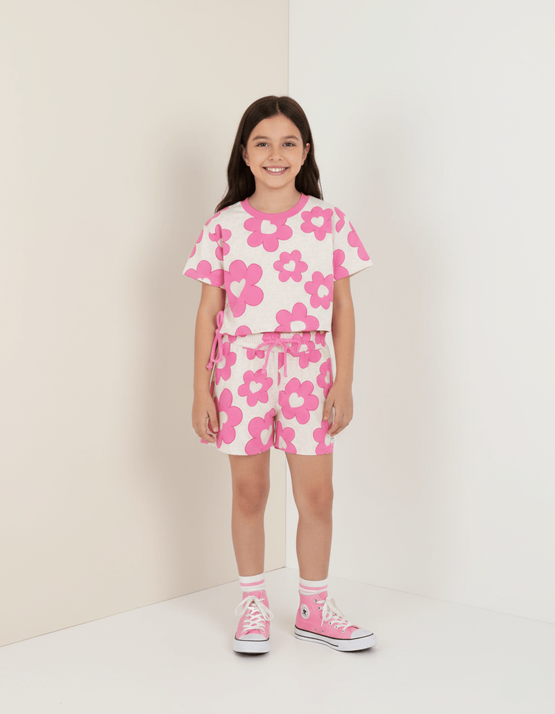 Conjunto Infantil Menina Blusa E Short Floral Rosa Mundo Cinti