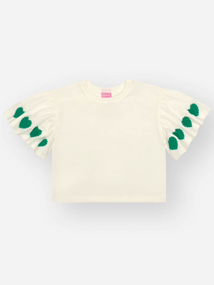 O conjunto infantil traz o equilíbrio perfeito entre estilo e conforto para as meninas que adoram looks modernos e delicados. A blusa cropped em meia malha 100% algodão oferece toque macio, respirabilidade e conforto durante todo o dia, garantindo liberdade de movimentos. As mangas possuem detalhe franzido e aplicação de estampa de corações, trazendo um charme lúdico e cheio de fofura.