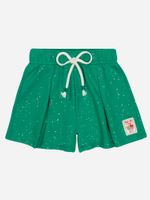 O short é confeccionado em moletinho waffle (50% algodão e 50% poliéster), tecido que combina suavidade ao toque, leve elasticidade e caimento estruturado, ideal para acompanhar a rotina infantil com praticidade. A aplicação de glitter adiciona um brilho especial, deixando o visual ainda mais encantador. O cós com elástico e cordão ajustável proporciona melhor vestibilidade e conforto para brincar, passear ou estar em momentos especiais.