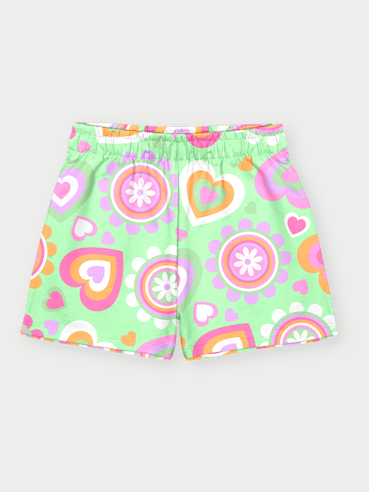 O short em moletinho light tem toque extremamente leve, macio e suave, oferecendo conforto o dia todo sem pesar ou aquecer demais. O elástico na cintura facilita o vestir e proporciona um ajuste confortável, enquanto a estampa floral em sublimação traz um ar delicado e encantador ao look, reforçando o tema floral de forma lúdica e moderna.